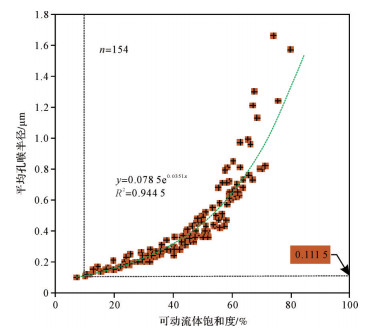 Figure 5. Cross-plot of movable fluid saturation vs. average pore-throat radius for Chang 8 oil-bearing layer in the Zhenjing block