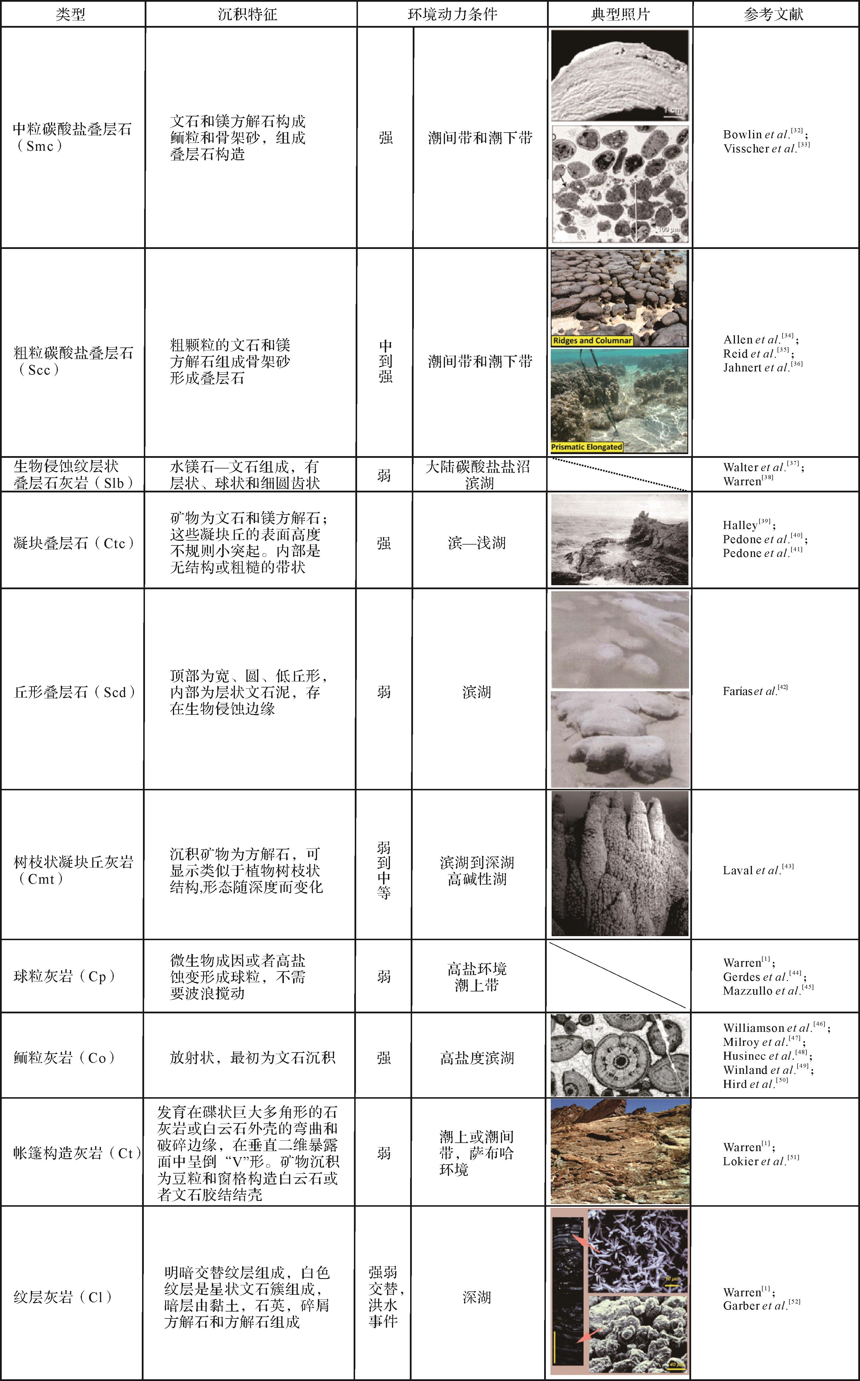 叠层石水菱镁矿(Hs):主要出现在近海滨湖/滨湖地带,可以在成岩过程中交代文石叠层石形成[72],或者在微生物作用下直接沉淀成数米高的原生水菱镁矿叠层石[73]。