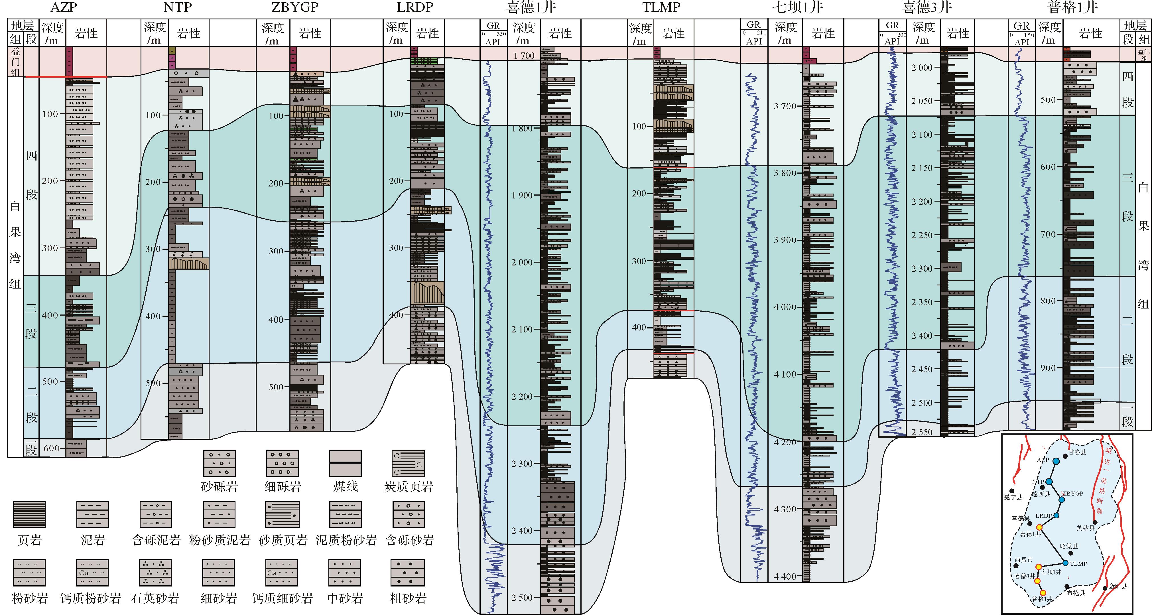 Figure 2. Stratum thickness correlation diagram of the Upper Triassic Baiguowan Formation in the study area[18]