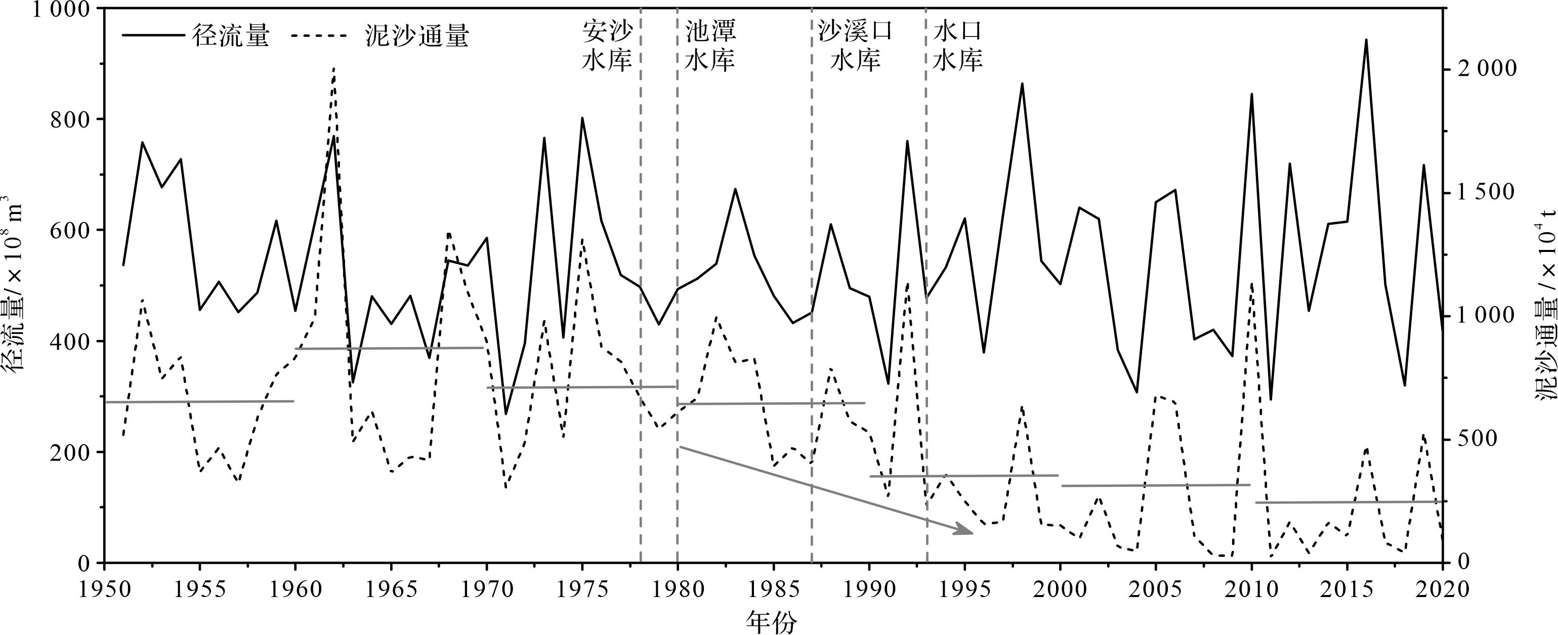 河流入海泥沙通量的减小可以引起河口水下三角洲侵蚀,导致表层沉积物变粗,在空间上具有明显差异[56⁃57]。对比20世纪80年代[58]和90年代[59]闽江河口表层沉积物中值粒径平面分布(图10a),从20世纪80年代初到90年代期间,闽江河口南航道以南的浅滩地区表层沉积物中值粒径总体减小,并且在空间上中值粒径较大的等值线(2 Φ)向北迁移(图10a),表明该时段闽江河口水下三角洲南部处于淤积状态;而闽江河口南航道以北的铁板沙、腰子沙等浅滩地区沉积物中值粒径明显增大,并且在空间上中值粒径较大的等值线(2 Φ)范围显著扩大(图10a),表明该时段闽江河口水下三角洲北部处于侵蚀状态。这种南部淤积、北部侵蚀的空间分布格局表明闽江河口水下三角洲沉积环境变化对人类活动的响应具有显著的空间差异。研究结果显示,虽然闽江流域耕地面积自20世纪80年代以来逐年减少,林地面积逐年增大[60⁃61],但由于林地结构不合理,天然林地比例逐渐减小,森林资源质量下降[61⁃62],建设用地面积明显增加[63],导致上游水土流失面积显著增加[62],输沙量显著增大[64]。闽江河流入海泥沙通量统计结果显示(图11),20世纪60—70年代的闽江入海泥沙通量高于50年代,自20世纪70年代末至80年代初的安砂水库和池潭水库建成后,闽江入海泥沙通量开始总体缓慢减少,而1984年沙溪口水库建成后,闽江入海泥沙通量继续持续减小,而1993年水口水库建成后,闽江入海泥沙通量显著减小。20世纪80年代以前输沙量的明显增大对河口水下三角洲的沉积环境的影响主要表现在淤积强度增大[14⁃15]。然而,自1980年前后泥沙通量开始逐渐减小后,闽江河口水下三角洲南侧海域依然表现出持续淤积状态,而北侧海域则开始出现侵蚀,这与图10对比结果一致[14,55],表明闽江河口水下三角洲北侧海域沉积物变化对流域人类活动响应比南侧更快。这种空间差异的出现可能与闽江河口地区的水动力条件有关。水文资料统计结果显示[65],琅岐岛南侧的梅花水道涨落潮分流比分别为30.8%和27.5%,分沙比分别为9.2%和21.9%,而北侧的长门水道涨落潮的分流比分别为69.2%和72.5%,分沙比分别为70.8%和78.1%,表明闽江入海泥沙主要通过长门水道入海。在整个潮周期内,闽江河口水下三角洲北侧水动力相对更强(图9),因而该地区沉积物活动性更强,且长门水道分沙比大,泥沙通量减少对北侧海域沉积过程影响更大,海底冲淤变化响应迅速。南侧梅花水道分沙比小,泥沙通量显著减少对南侧海域影响相对较小,并且在梅花水道口门及附近海域水动力较弱,有利于泥沙堆积,尽管闽江入海泥沙通量逐渐减少,但在该海域仍然表现为淤积状态。