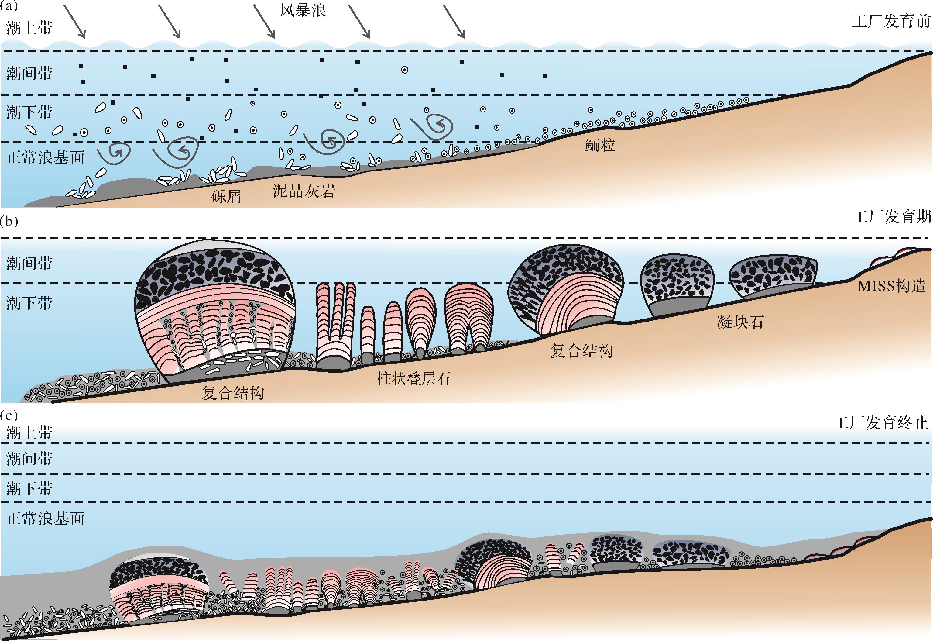3.1. 研究区微生物碳酸盐生产工厂构成和发育特征
