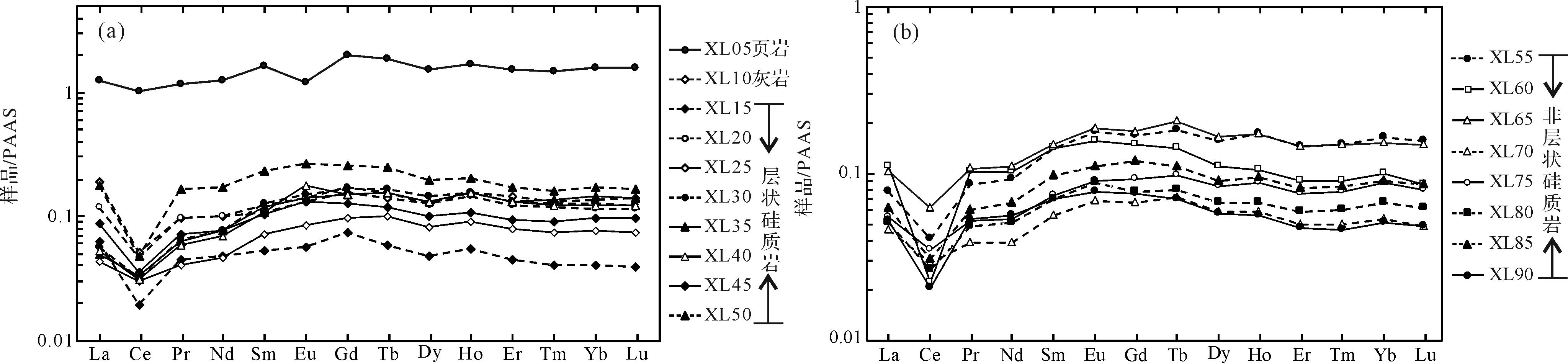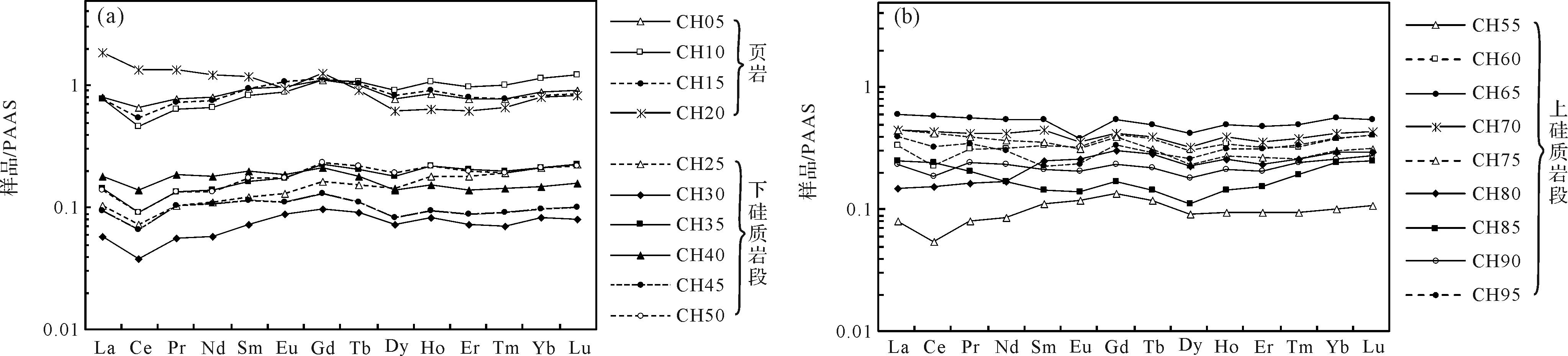 Figure 5. Post⁃Archean Australian Shale (PAAS⁃)normalized REE pattern of the Kuhfeng Formation chert in the Chaohu section